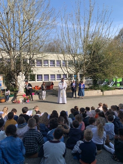A l’occasion de la fête de Saint Joseph, toute la communauté éducative d’un établissement portant le nom Saint Joseph s’est retrouvée pour un temps de célébration, de partage et de prières avec le prêtre de la paroisse.